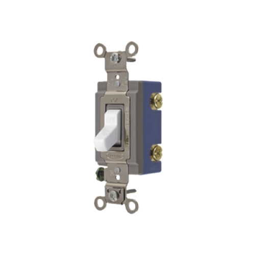 Interruptor de Palanca 15 A 120-277 V CA/ Unipolar / Grado Industrial/ Uso Extra Pesado / Cableado Lateral y Posterior / Color Blanco.