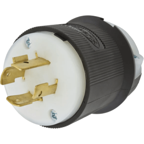 Clavija industrial con bloqueo de media vuelta de alta resistencia diseñado para aplicaciones de 3 fases delta 480V AC. Cuenta con configuración L16-20P de 3 polos y 4 hilos con conexión a tierra, certificado para interrupción de corriente a plena capacidad nominal. Fabricado en nylon de alta calidad con protección IP20 para uso en interiores secos. Diseñado con terminales de tornillo que aceptan cableado de cobre trenzado desde #16 AWG hasta #8 AWG. Ideal para entornos industriales pesados donde se requiere confiabilidad y seguridad eléctrica superior.