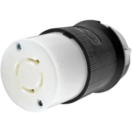 Conector industrial Twist-Lock® tipo hembra diseñado para aplicaciones pesadas en entornos industriales. Con capacidad para 20 amperios en sistemas trifásicos delta de 480V AC, cuenta con 3 polos y 4 hilos incluyendo conexión a tierra. Fabricado en nylon de alta resistencia con cuerpo aislado y terminales de tornillo que aceptan conductores desde #16 AWG hasta #8 AWG. Diseñado para cumplir con los estándares UL 498 y CSA C22.2 No.42, ofrece protección IP20 contra polvo y humedad, junto con un diseño de agarre de cable superior que protege las terminaciones contra tensiones excesivas.