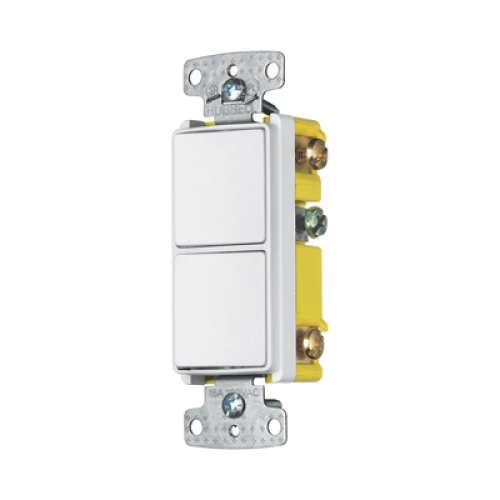 Interruptor Residencial 15 A 120-277 V, 1 Polo 3 Vías, Cableado lateral, Color Blanco.