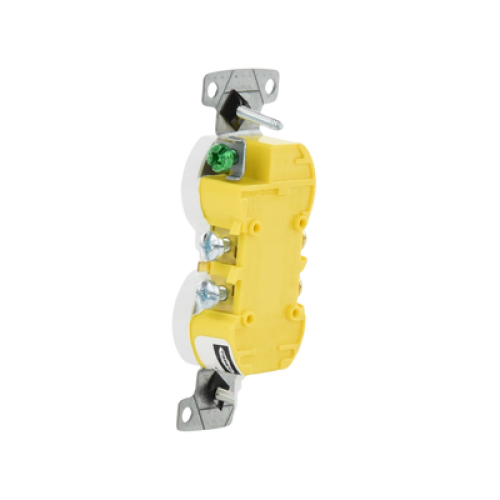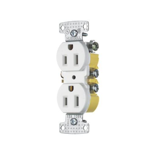 Dispositivos de hoja recta, receptáculo grado residencial, dúplex, 15A 125V, conexión a tierra de 2 polos y 3 cables, nema 5-15R, color blanco.