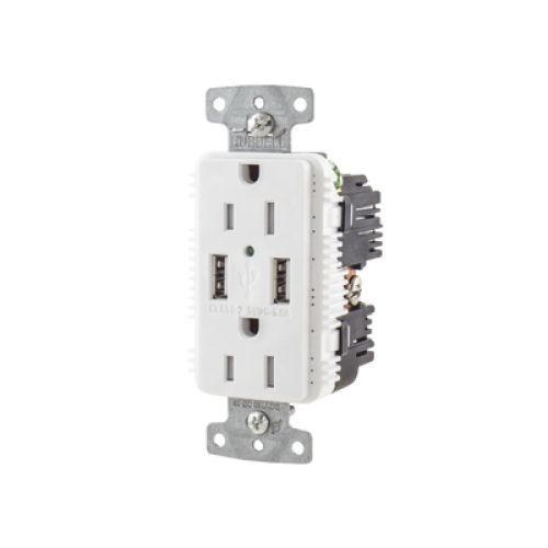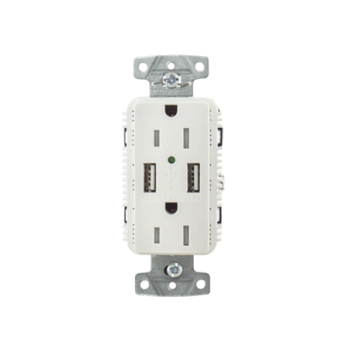 Contacto Dúplex con 2 Puertos USB, 15A 125V, 2 Polos, 3 Hilos, Color Blanco.
