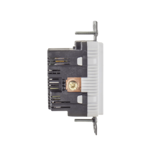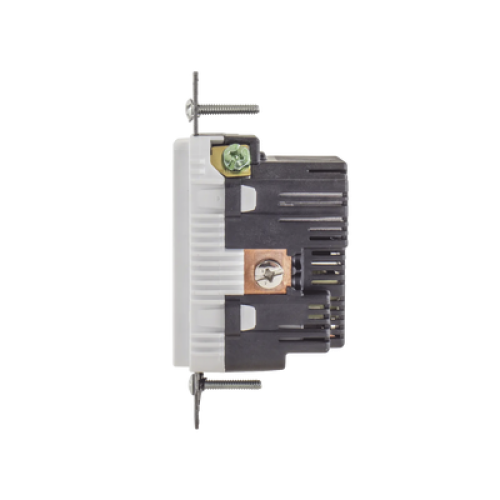 Conector grado residencial, dúplex, decorador, 15A, 125V, 2 polos, 3 hilos, color blanco.