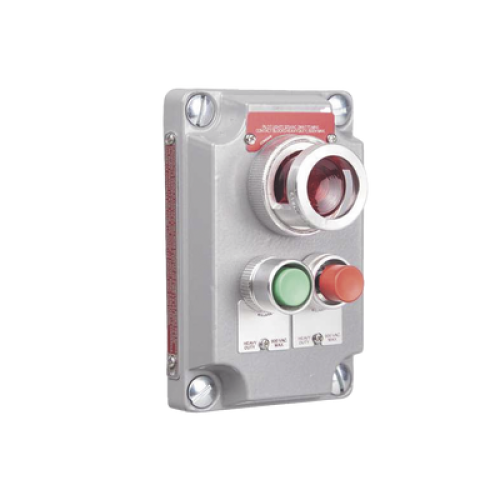 Cubierta para Estación de Control con 2 Botones Pulsadores Rojo-Verde y Luz Piloto Roja / Uso en Áreas Clasificadas