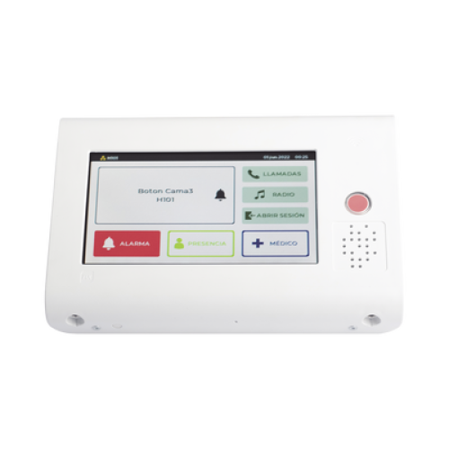 Terminal de Habitación IP para Hospitales / Lector RFID 125 KHz / Audio Bidireccional / SIP / PoE / Pantalla Táctil 7" / Compatible con NX1071 y NX1075