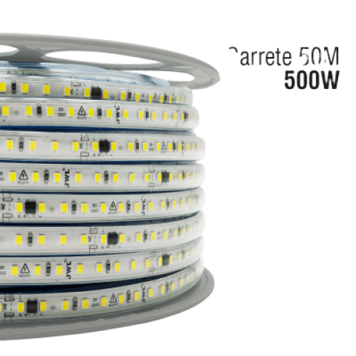 Manguera LED Luminosa Blanca de Resina Transparente y Flexible / Para uso Interior o Exterior / Carrete de 50 m/ 110V CA 4.2 A/ 500 W Potencia / T.C.C. 6500 K.
