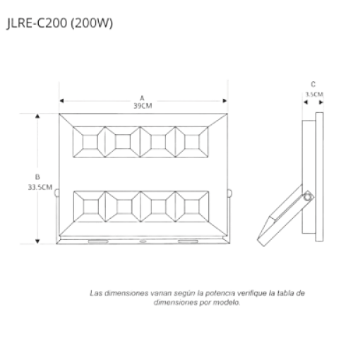 Reflector LED Ultradelgado de 200 W / Dimensiones 390 x 335 mm / 110 - 240 V CA~ 50/60Hz / Ultra delgado / Uso en exterior - interior.
