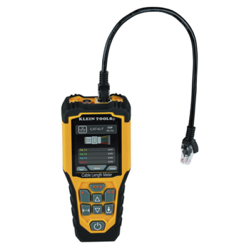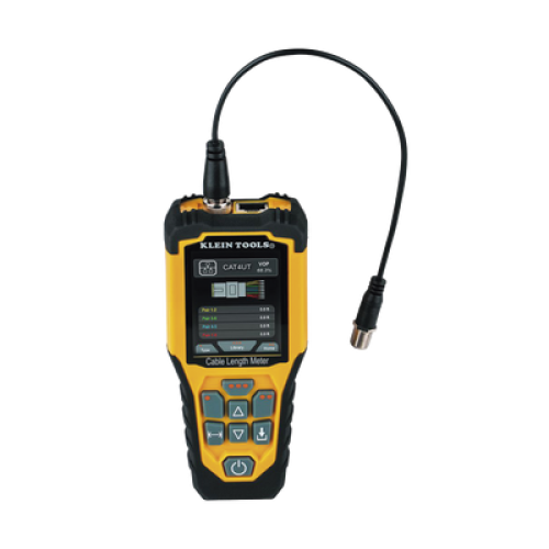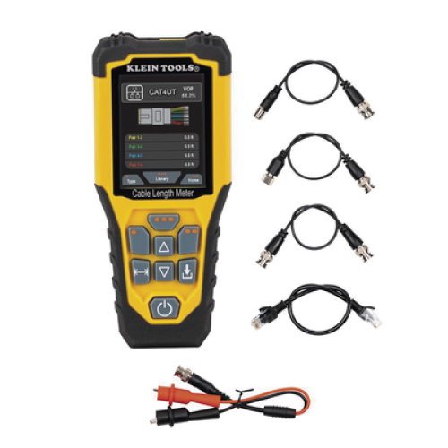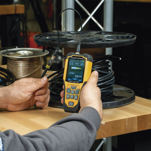 El medidor de longitud de cable Klein Tools es un probador portátil o Reflectómetro de Dominio Temporal (TDR, por sus siglas en inglés) basado en el método de Reflectometría. Dicho método funciona mediante la emisión de señales o impulsos eléctricos diseñado para medir el tiempo transcurrido entre el 'pulso incidente' (inicial) y el 'pulso reflejado' (final o eco). La diferencia de tiempo entre uno y otro se traduce en unidades de longitud (píes o metros y en unidades métricas o imperiales). El TDR permite de forma rápida y con gran precisión (+/- 2%), medir la longitud en cables eléctricos, de datos, de dos hilos y Romex® en un rango de distancia de hasta 914 m.
