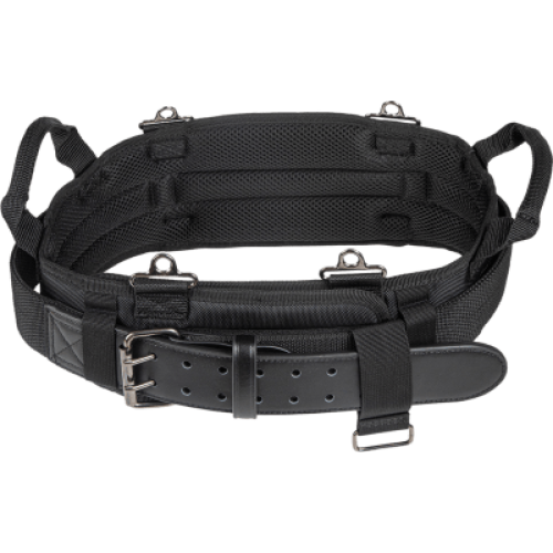 Cree su propio cinturón de herramientas, y transporte solo las herramientas que necesita. El cinturón acolchado con interior de malla de trama abierta es cómodo. Puntos de conexión metálicos que brindan mayor soporte cuando se enganchan los tirantes. El cinturón viene con manijas laterales para levantarlo con facilidad y se ajusta a contornos de cintura de 35'' a 39'' (88,9 a 99,1 cm).