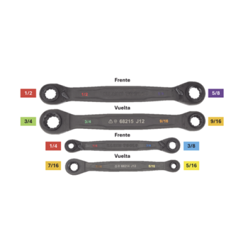 Juego de 2 llaves Estriadas de Matraca 4 en 1 con 8 Medidas Inglesas 1/2-5/8", 3/4-9/16", 1/4-3/8", 7/16-5/16"
