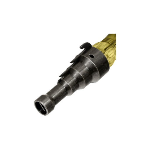 - Escariador con diseño de punta recubierta que evita que los tornillos se deslicen fuera de la punta, especialmente cuando se ajustan adaptadores de tubos conduit difíciles de alcanzar; capuchón más grueso diseñado para uso en condiciones rigurosas