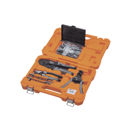 Juego de Herramientas de Conexión Fotovoltaica (Solar), 6 Piezas: Estuche, 2 Llaves Aisladas MC4, Cortador 1/0 AWG Al, Pelacables 6-12 AWG Sólido y 8-14 AWG Trenzado, Ponchadora MC4T 10-14 AWG