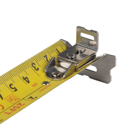 - Gancho doble que permite asegurar la cinta a elementos como pernos, tubos conduit, tuberías, etc. en la parte frontal o posterior de la cinta para medir con cualquier escala de medición