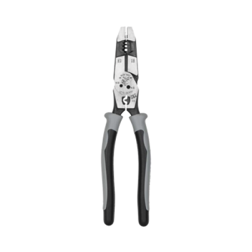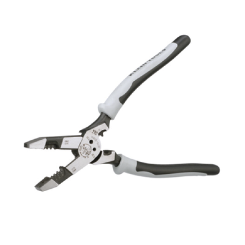 ¡Pele, corte, doble, cizalle y ponche con una sola herramienta! Con cuchillas templadas por inducción en toda su longitud y diseño de alta palanca, estas pinzas híbridas proporcionan una mayor potencia de corte de cables duros. Pela fácilmente cable sólido de 10-14 AWG y cable trenzado de 12-16 AWG.