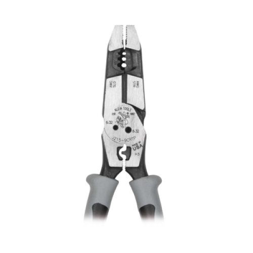 La cabeza moleteada ancha sujeta y dobla cables con facilidad. Los prácticos agujeros para cortar pernos de 6-32 y 8-32 y una ponchadora para conectores, lengüetas y terminales sin aislamiento la convierten en una herramienta imprescindible para su maleta.