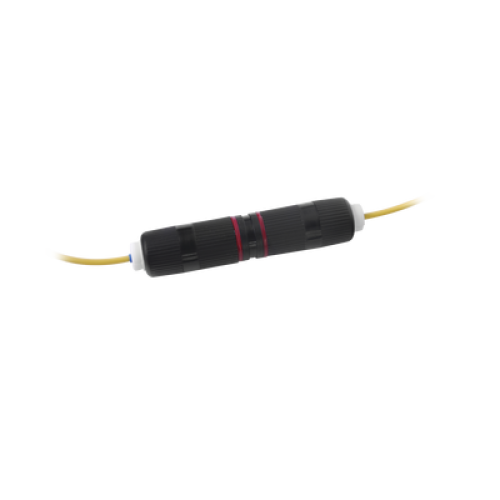 El acoplador EFUNIONSC a prueba de agua de LinkedPro permite la unión de carretes de fibra óptica monomodo EZ Fiber acoplando sus conectores de manera mecánica y protegiéndolos de la intemperie.