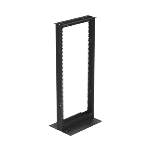 Rack de 2 Postes (Doble Perforación), Estándar 19", 24 Unidades, Fabricado en Acero, Base "L" para Anclar a Piso.