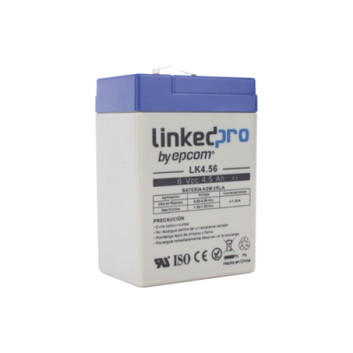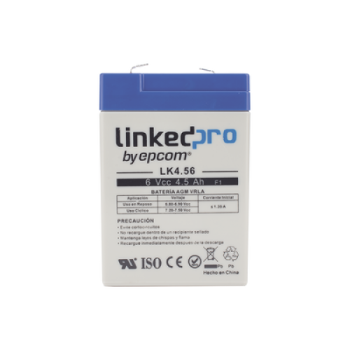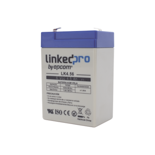 Batería 6 V / 4.5 Ah / UL / Tecnología AGM / Vida útil promedio 5 años / Para uso en equipo electrónico, Alarmas de Intrusión / Incendio/ Control de acceso / Video Vigilancia / Terminales F1 ( Incluye adaptador F2