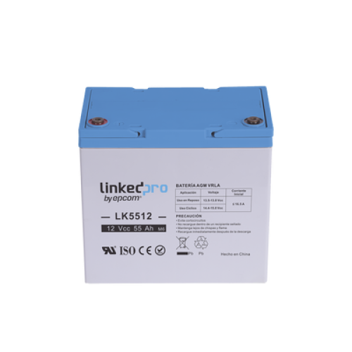 Batería 12 V / 55 Ah / UL / Tecnología AGM / Vida útil promedio de 5 años / Para uso en equipo electrónico, Alarmas de Intrusión / Incendio/ Control de acceso / Video Vigilancia / T2