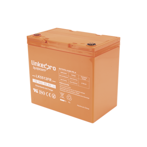 Batería 12 V / 55 Ah / UL / Tecnología AGM-VRLA / Vida útil promedio de 5 años / Retardo a la flama / Para uso en equipo electrónico, Alarmas de Intrusión / Incendio/ Control de acceso / Video Vigilancia / Termina