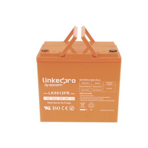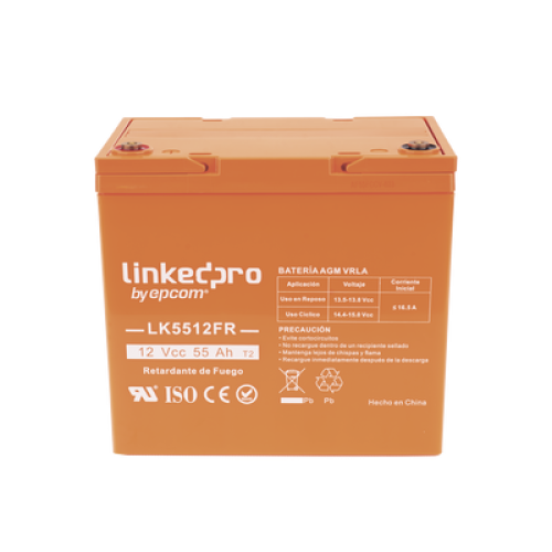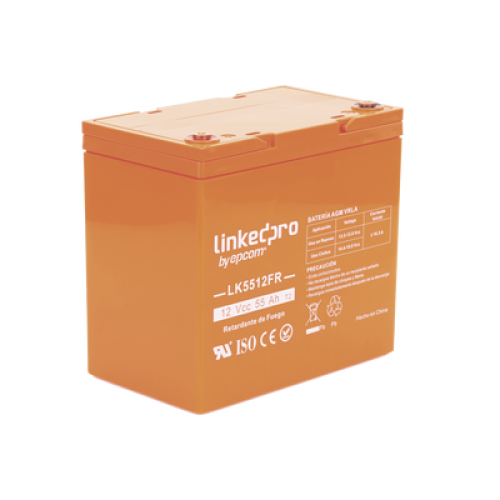Batería 12 V / 55 Ah / UL / Tecnología AGM-VRLA / Vida útil promedio de 5 años / Retardo a la flama / Para uso en equipo electrónico, Alarmas de Intrusión / Incendio/ Control de acceso / Video Vigilancia / Termina