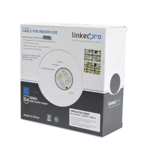 Cable Cat5e de Alto Rendimiento, con Certificaciones ETL, UL, Color Gris, de 100 Metros (328 Pies) para Aplicaciones en CCTV, Redes de Datos. Uso Interior.