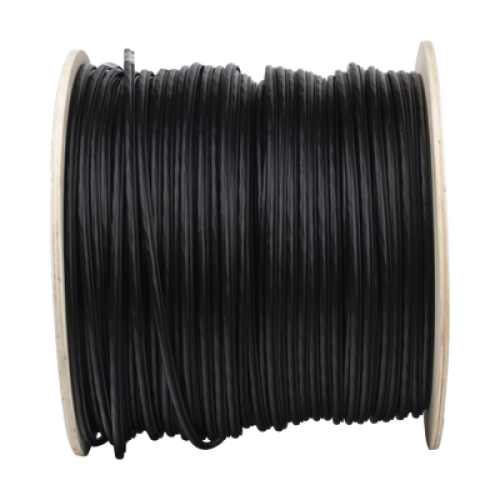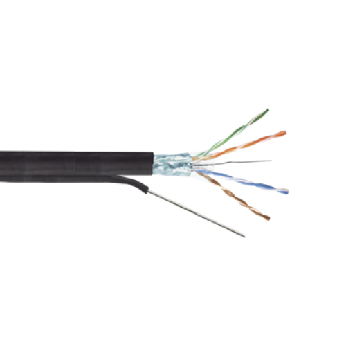 Bobina de Cable FTP con Mensajero de Acero de 305 Metros (1000 Pies) Cat6+ Calibre 23, Color Negro, para Aplicaciones en Video Vigilancia y Redes de Datos / Uso en Intemperie y Aplicaciones Aéreas