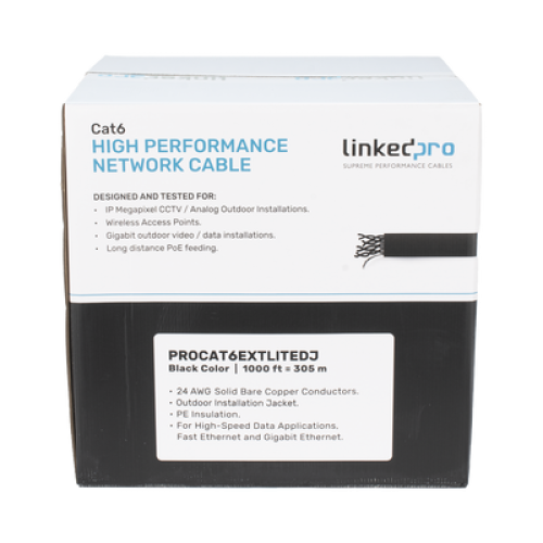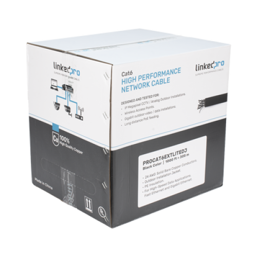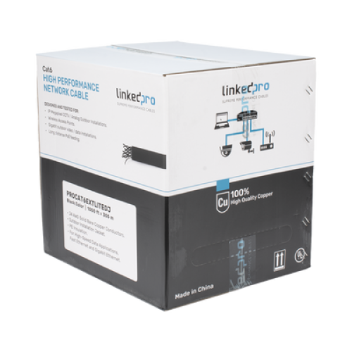 Bobina de Cable UTP 305 Metros (1000 Pies), Cat6 con Doble Forro, para Exterior, Climas Extremos, Color Negro