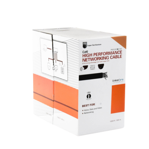 Bobina de Cable de 305 Metros (1000 Pies) Cat6 Aleación de Cobre y Aluminio (CCA), Color Negro Versión Económica. Uso en Interior.