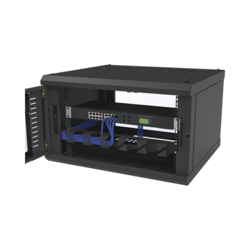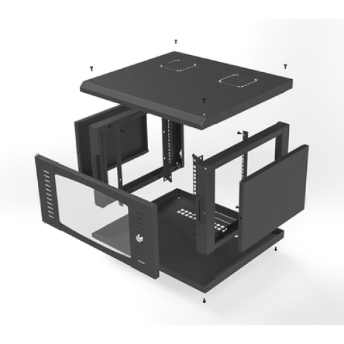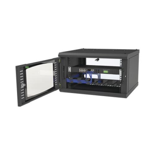 Gabinete para Montaje en Pared, con Puerta de Cristal Templado, Cuerpo Fijo, con 6 Unidades de Rack, de 19in, Fabricado en Acero