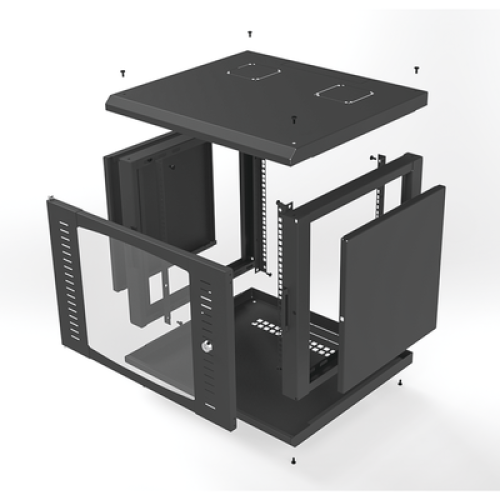 Gabinete para Montaje en Pared Fijo, con 9 Unidades de Rack, de 19in, Puerta de Cristal Templado, Fabricado en Acero