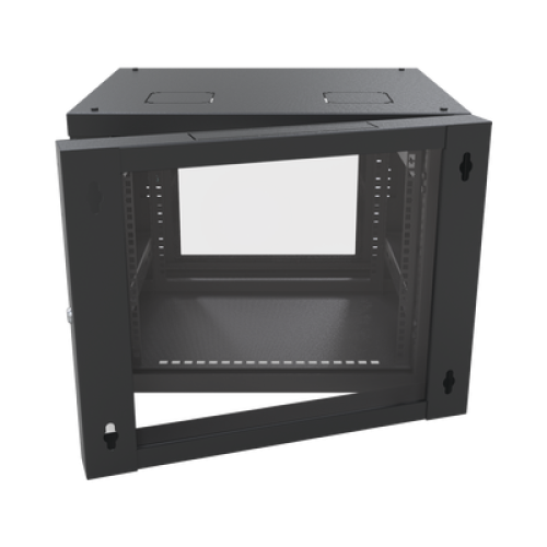 Gabinete Abatible de Pared (Con Marco Trasero) con Rack 19" de 12 Unidades. Ventana de Cristal Templado.