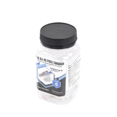 Bote con 50 Plugs Pass Through RJ45 Cat6 sin Blindaje, con Alivio de Tensión Incluido, Chapado de Oro a 30 Micras para Durabilidad Extrema