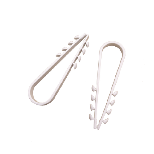 Bolsa con 100 clips sujetadores de plástico para cables de 19 a 25 mm. Ideales para instalaciones en pared, brindan sujeción firme y segura.