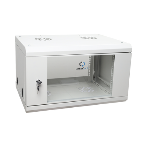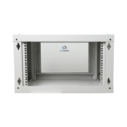 Gabinete de Pared de 6U con Puerta de Cristal Templado, 455 mm de Profundidad Total, Rack de 19'', Acero Reforzado Color Gris Mate