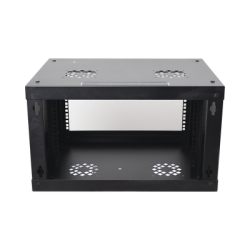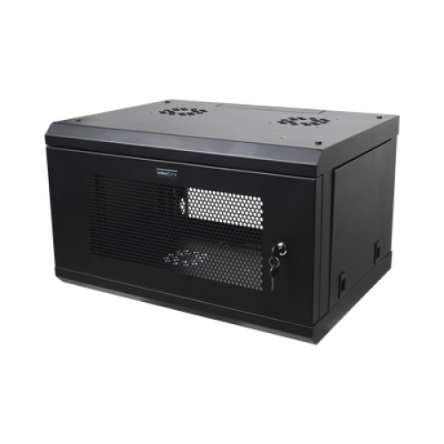 Gabinete de Pared de 6U con Puerta Perforada, 455 mm de Profundidad Total, Rack de 19'', Acero Reforzado Color Negro