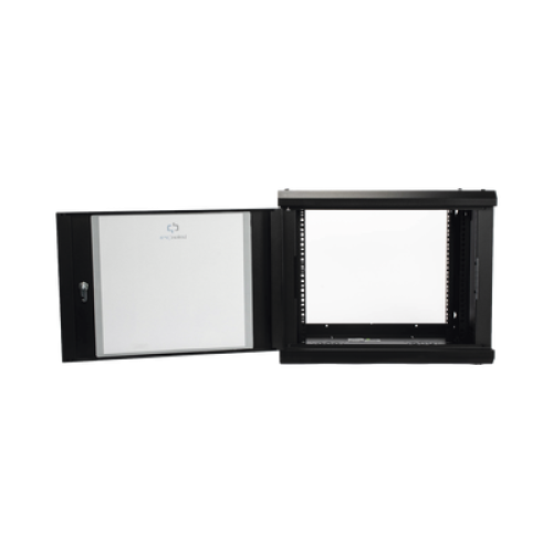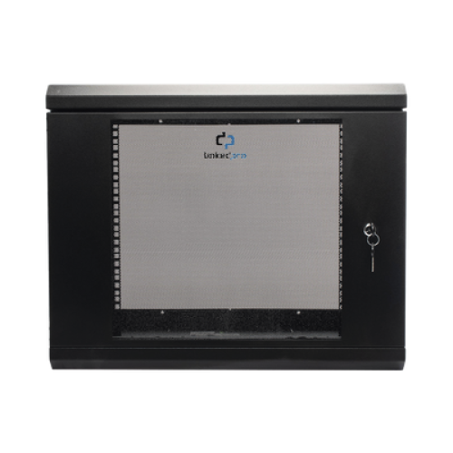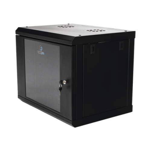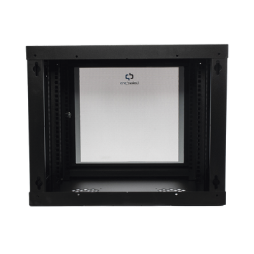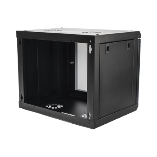 Gabinete de Pared de 9U con Puerta de Cristal Templado, 455 mm de Profundidad, Rack de 19'', Acero Reforzado Color Negro.