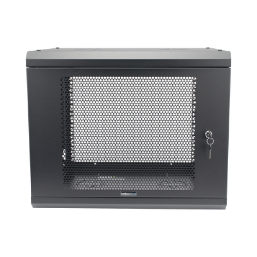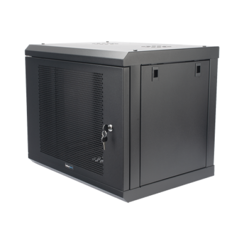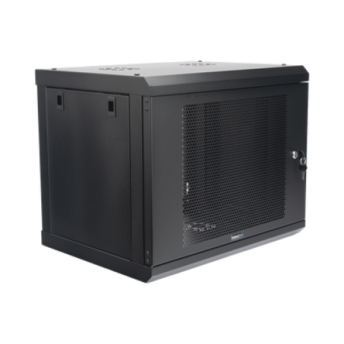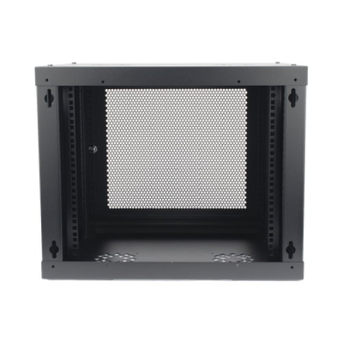 Gabinete de Pared de 9U con Puerta Perforada, 455 mm de Profundidad, Rack de 19'', Acero Reforzado Color Negro.
