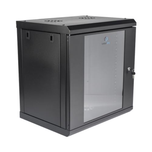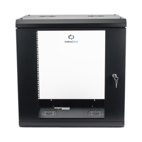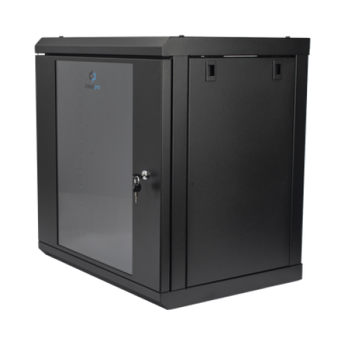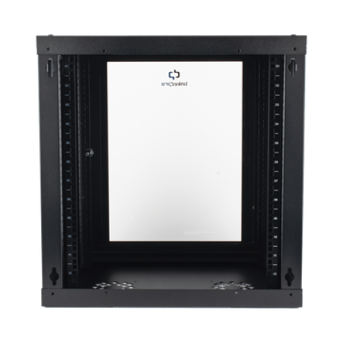 Gabinete de Pared de 12U con Puerta de Cristal Templado, 455 mm de Profundidad, Rack de 19'', Acero Reforzado Color Negro.