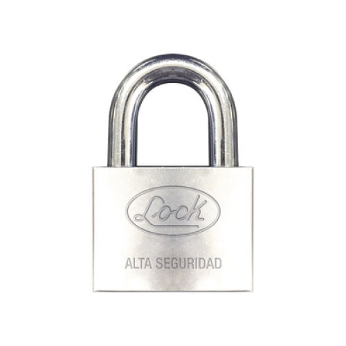 Candado de hierro alta seguridad con llave de disco/ Acabado Cromado/ Llaves Abloy/ Medida de Horquilla 50 mm.