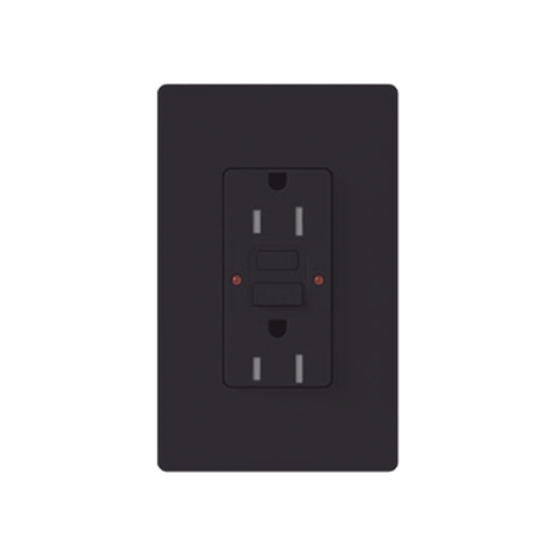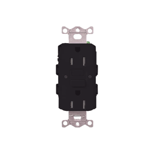 Tomacorriente 125V 15A resistente a manipulaciones, color negro.