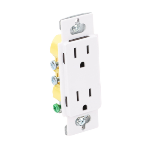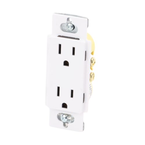 Tomacorriente receptáculo convencional 120V, 15A, color blanco.