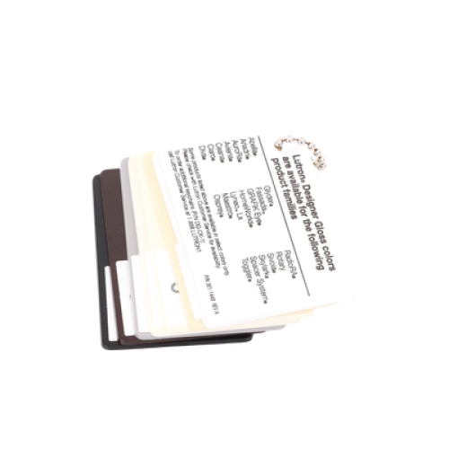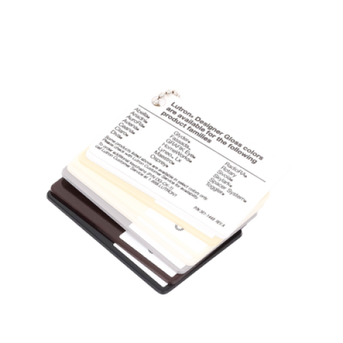Muestrario, de colores con acabados Gloss/Brilloso para los atenuadores, teclados, interruptores y accesorios LUTRON.
