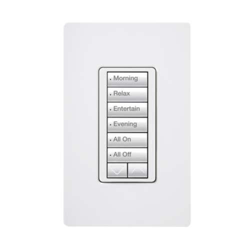 (RadioRA2) Teclado seetouch 6 botones, 2 botones subir/bajar, programe escenas diferentes en cada botón.