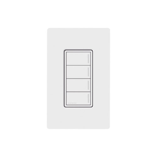 Las botoneras montadas en la pared se instalan en una caja de pared estándar para controlar las luces y/o las cortinas individualmente o en escenas predefinidas. Cuenta con botones retroiluminados y grabado personalizado.