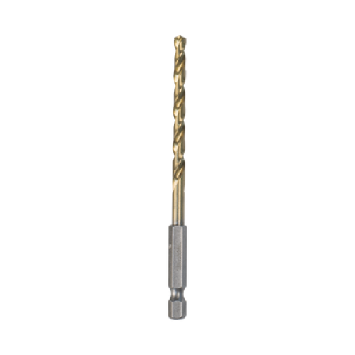 Broca hexagonal de acero A.V. de 3/16” con recubrimiento de titanio, con entrada de 1/4"