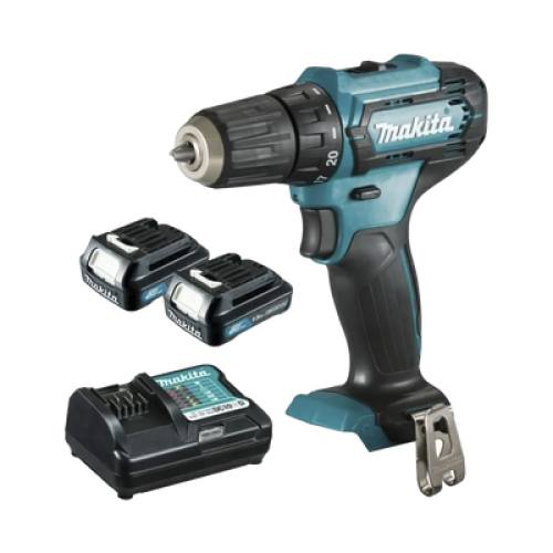 Atornillador broquero cambio rápido 3/8”. 2 baterías 12v de 1.5 amperes y cargador.