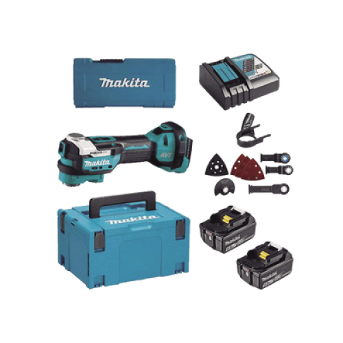 Multiherramienta Oscilante Inalámbrica de 18V, incluye 2 Baterías BL1850B de 5.0 A, Cargador DC18RC, Accesorios y Estuche Makpac