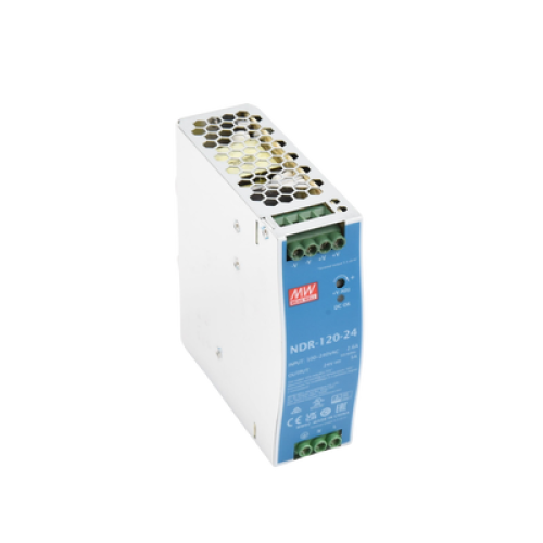 Fuente de poder industrial de 120 W, salida 24 Vcc 5A, entrada 90~264 VCA, Montaje en riel DIN,