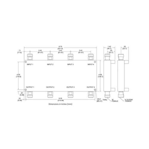 Los puertos de salida no utilizados deben terminarse externamente en 50 Ω, con un rendimiento PIM adecuado. Tenga en cuenta que la relación de fase de las salidas en este modelo no es consistente.